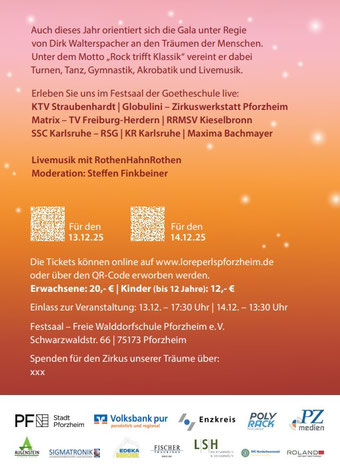 Mit großer Freude und Begeisterung möchten wir Sie einladen, Teil dieses außergewöhnlichen Projektes zu werden: Der „Zirkus unserer Träume“ ist ein regionales Kunst – und Kulturprojekt und steht für Kreativität, Entfaltung und pure Lebensfreude. Wir sind uns sicher, dass unsere Vorstellungen im Dezember die Herzen und Sinne des Publikums in einzigartiger Weise berühren werden.